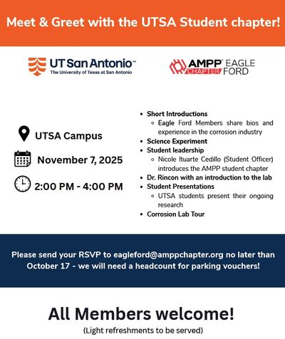 Join us for an inspiring Meet & Greet with the UTSA AMPP Student Chapter and Eagle Ford Members! 🚀
